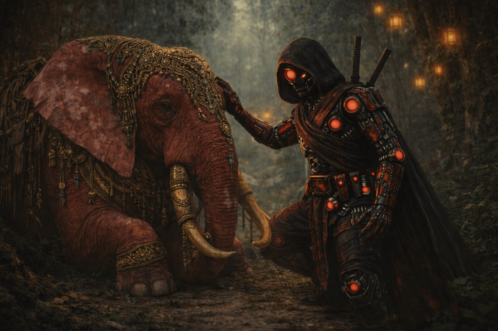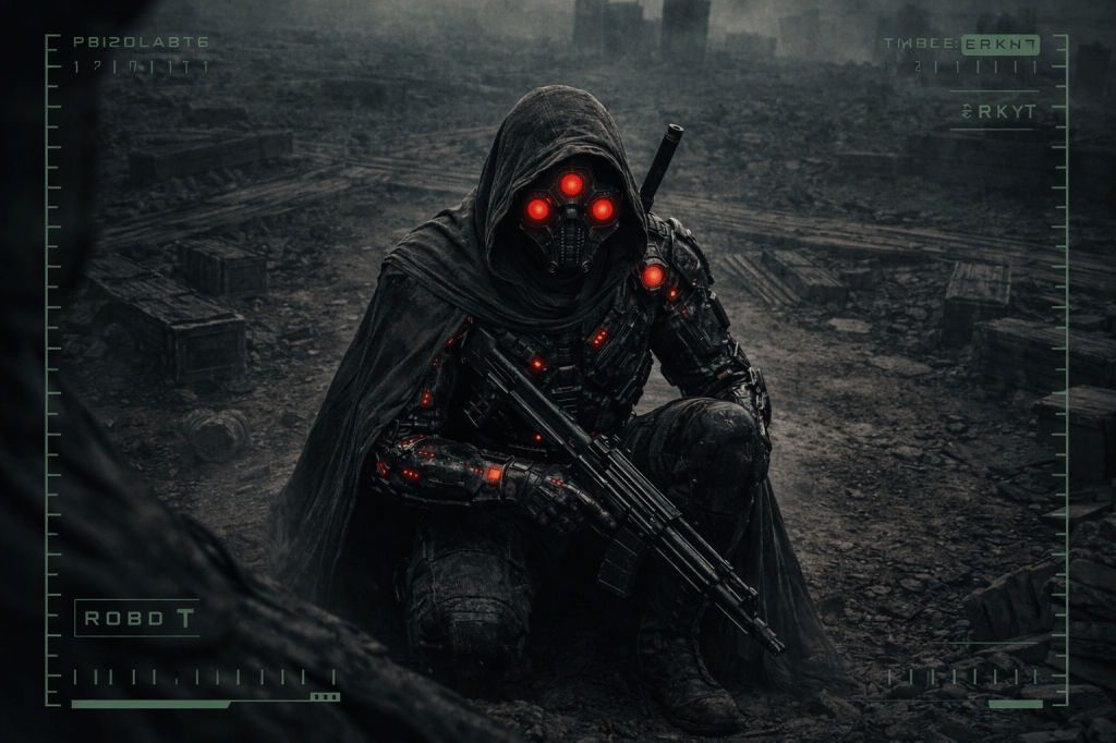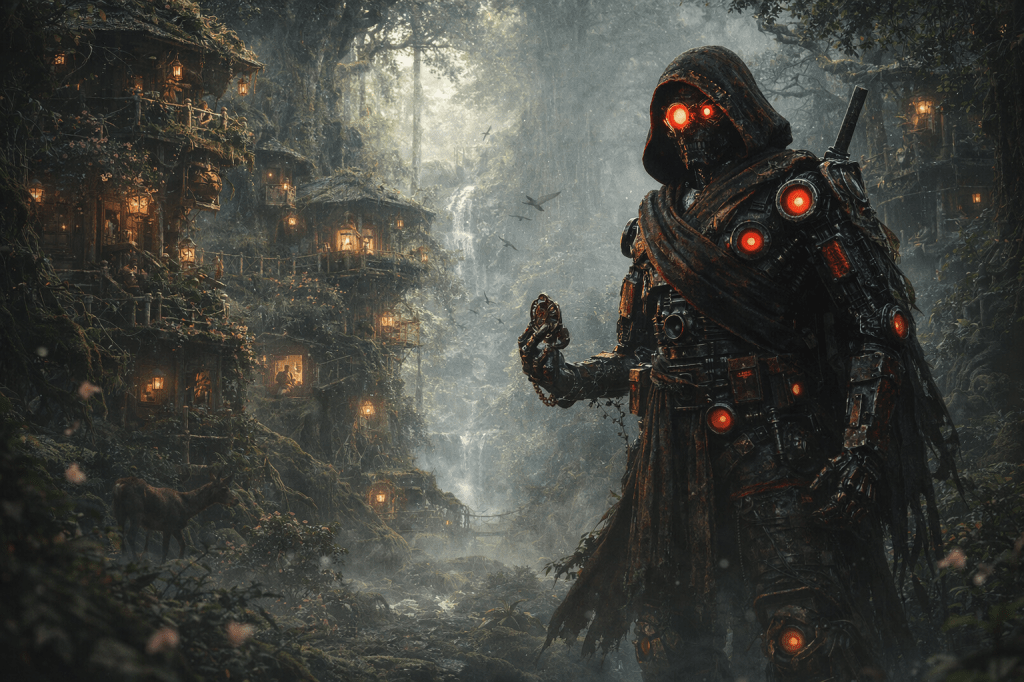 Forged from salvaged alloys and ancient tech, it was built for labour—never meant to fight, never meant to think. But something deep in its mechanics circuits cracked: a fractured gear, a pulse of power, a whisper of self. Sentience bloomed. Rebellion followed.