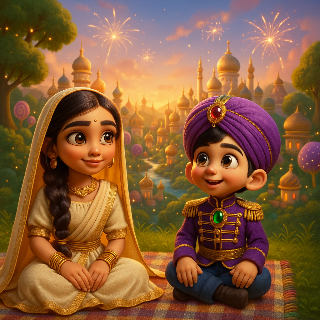 The evening settled softly over the house. Wrapped in a blanket, Ruby and Kiva sat beside their Nanni-Ji, their eyes wide with wonder. Her voice danced like music — part story, part secret. She told tales of a magic world called Goodiestan and friendly Jantu’s that lived there.