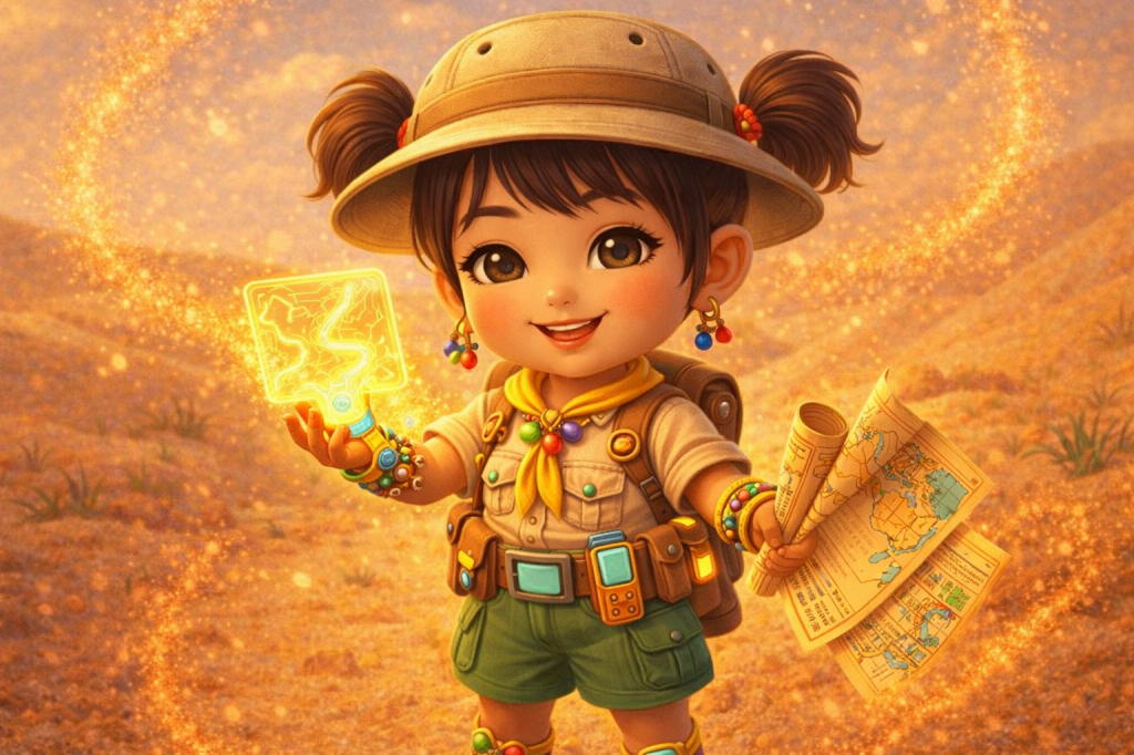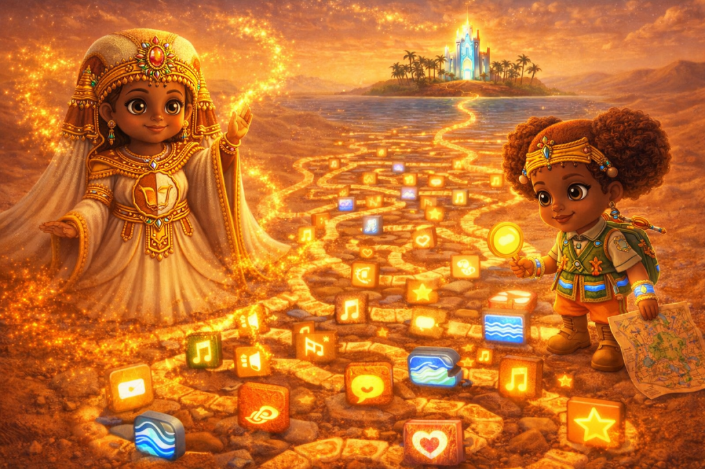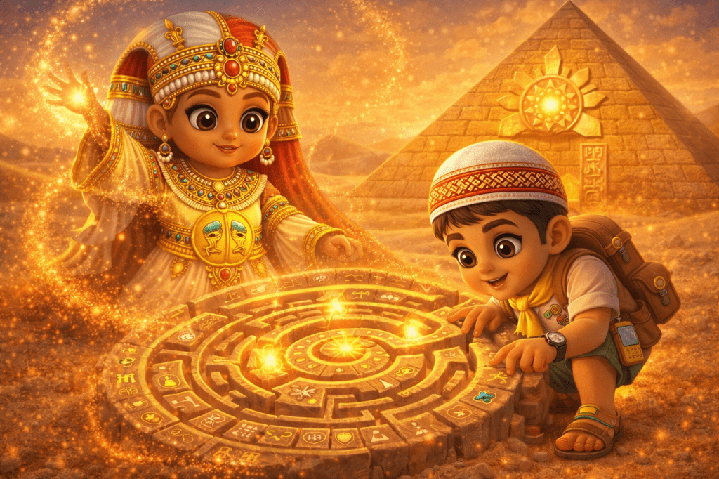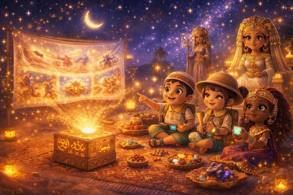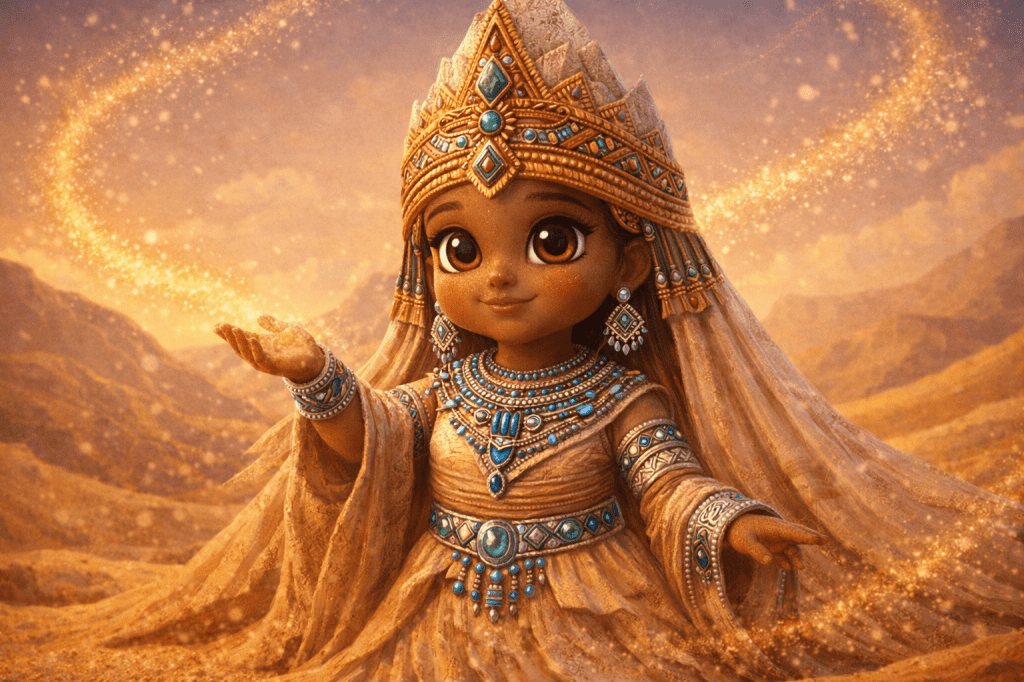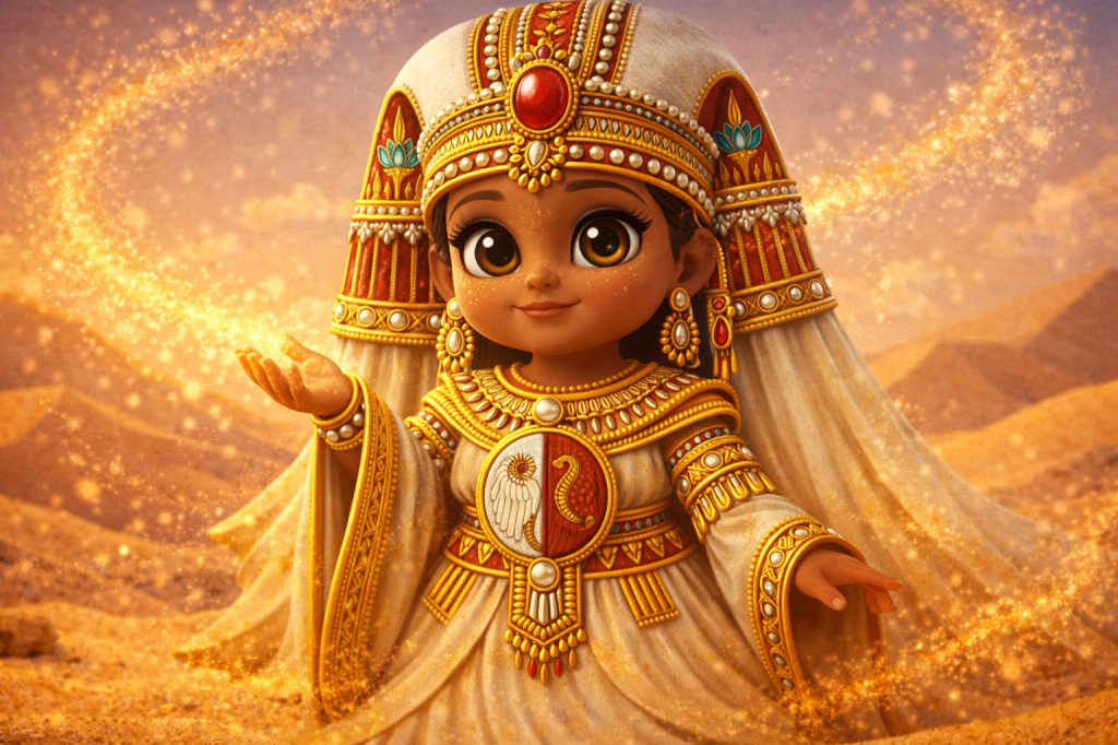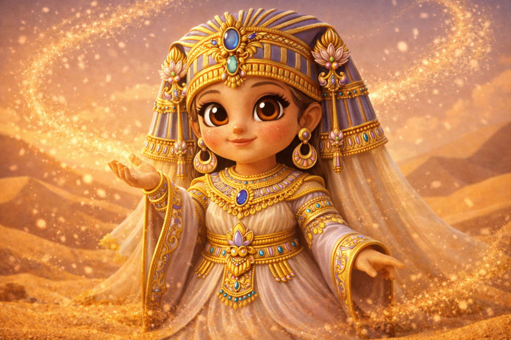 This is a universe where young explorers from across the world come together. They learn, play, and create. Children are guided by the curious, kind, ever-changing Safari Pharaohs. These guides help them journey across glowing dunes, sparkling oases, sand cities, and ancient kingdoms sculpted entirely from sand.