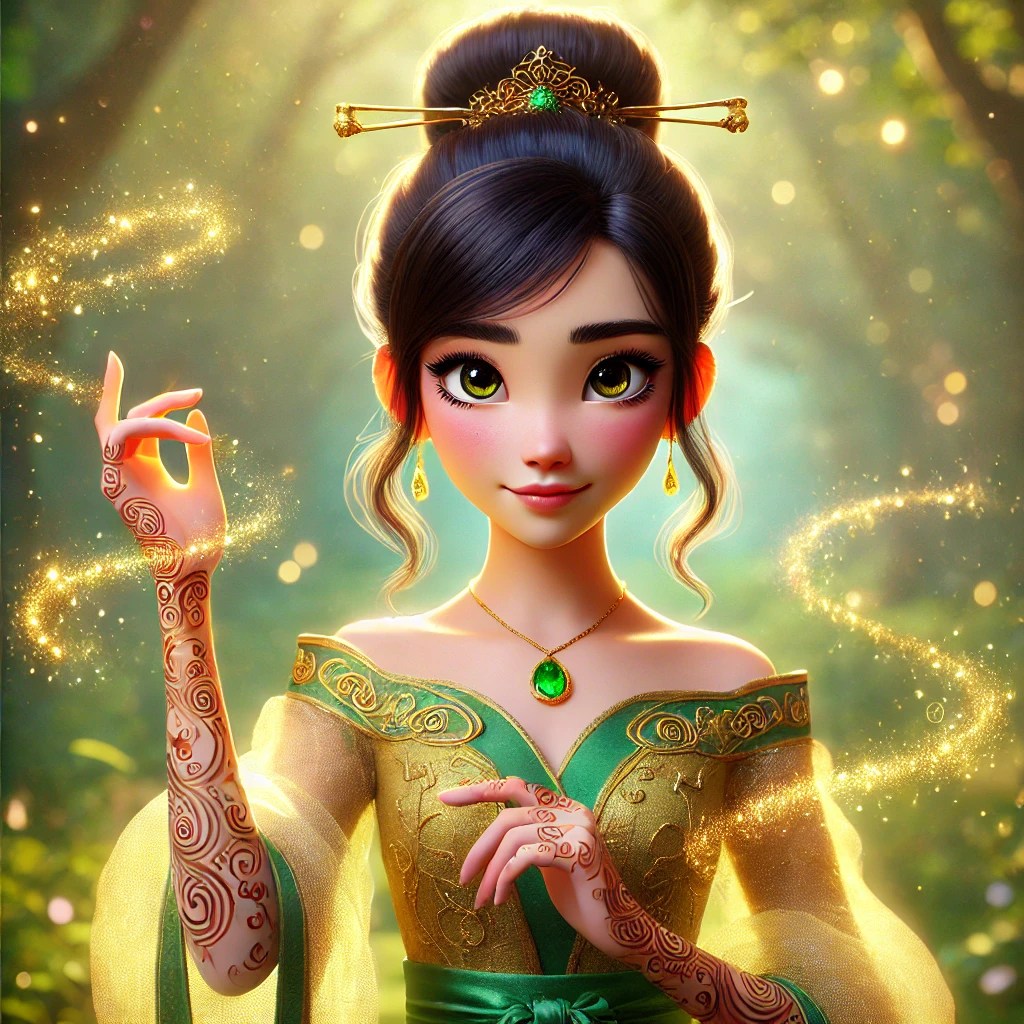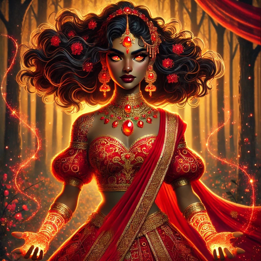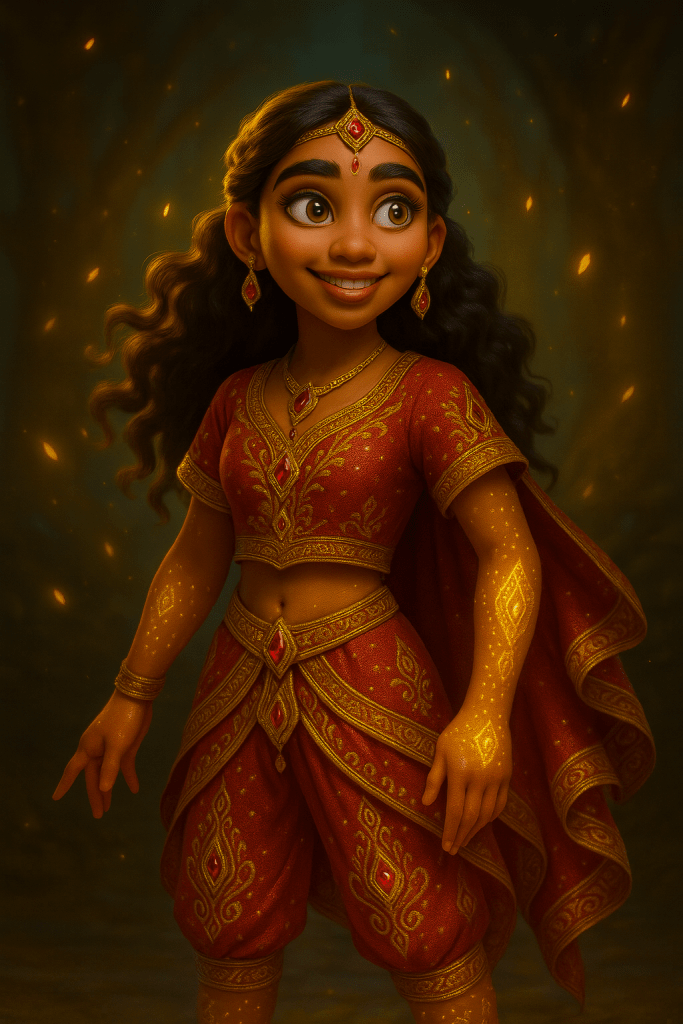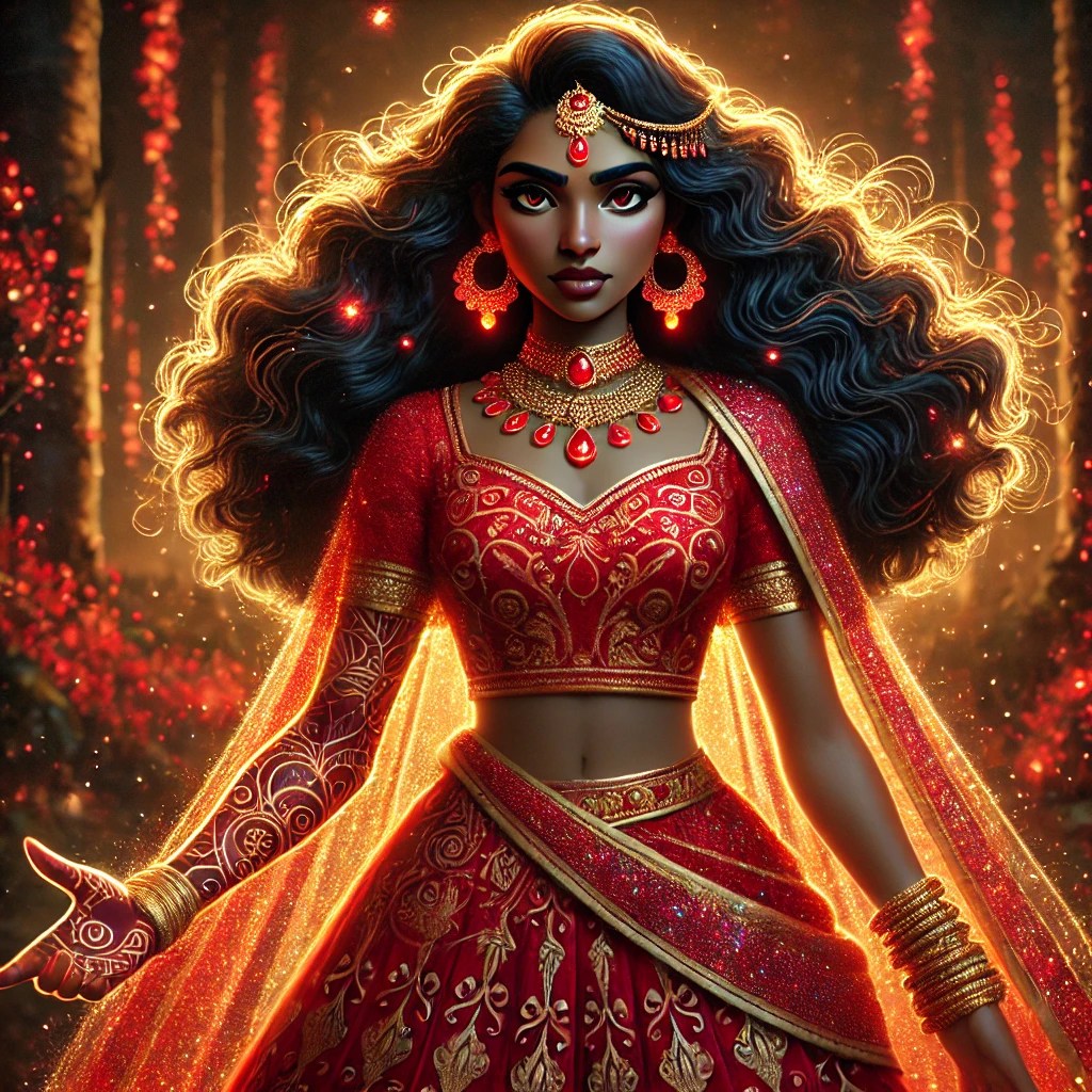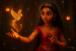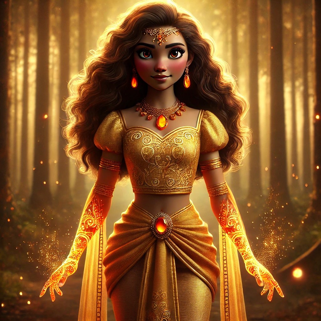 Mehndi is a bold and brilliant 15-year-old young lady of South Asian heritage, fierce, intuitive, and loyal, whose power flows through the intricate henna patterns on her skin. Rooted in tradition, her magic awakens through emotion — especially passion and protection — sustained by a warm red ruby pebble that chose her and pulses with the fire she carries within. When her hands ignite with golden flame, ancient symbols rise to life, conjuring protective forces and mythical forms, most notably a radiant phoenix born of fire and ink. A natural leader, Mehndi is brave and quick to act, yet deeply compassionate and protective of those she loves. Her bond with ritual, family stories, and sacred art runs deep, and her journey is one of balance — learning to guide her powerful magic with intention, grace, and purpose.