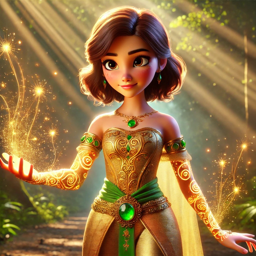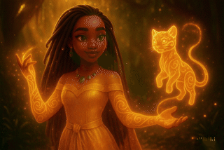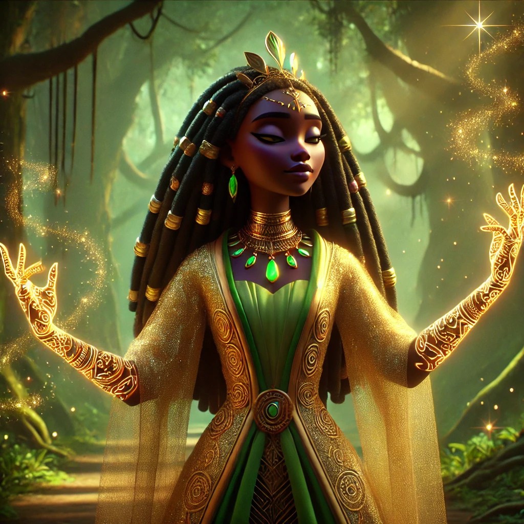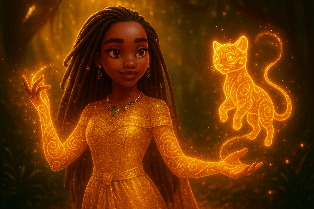 Lalle is a vibrant 15-year-old young lady of Jamaican heritage, energetic, funny, and expressive, whose magic pulses through sound, rhythm, and light. Golden henna patterns shimmer across her skin, and the glowing pebble that chose her vibrates with musical energy, sustaining the power she channels through movement and emotion. With every stomp, spin, or clap, she releases ripples of sound-based magic — golden pulses, protective shockwaves, or playful forms of living light, guided by her spirit symbol, the Felidae. Bright, bold, and full of laughter, Lalle moves before the beat drops, turning every moment into celebration. Beneath her high-energy glow, she is deeply sensitive and tuned in to those around her, blending traditional Caribbean dance with modern flair. Her journey is about learning to guide her powerful rhythm without dimming her shine, proving that joy, expression, and heart can be forces as strong as any storm.