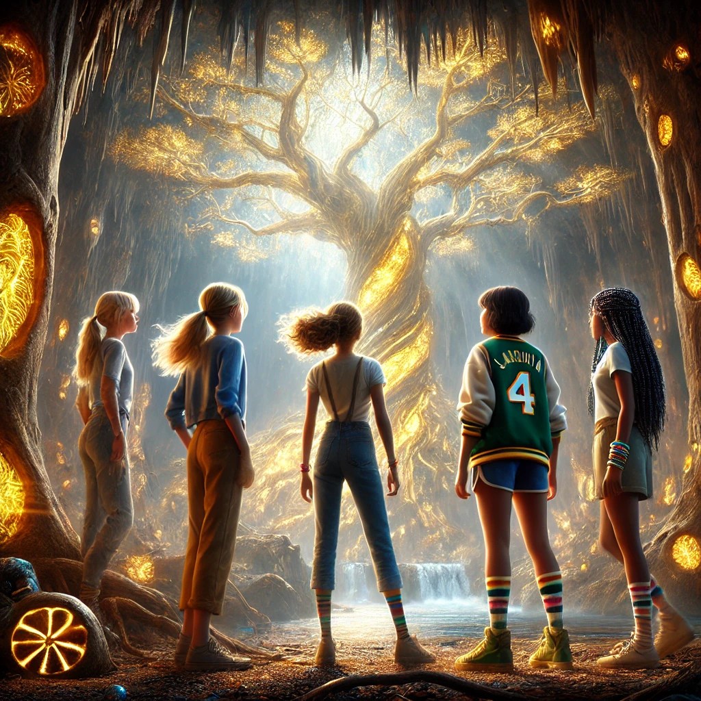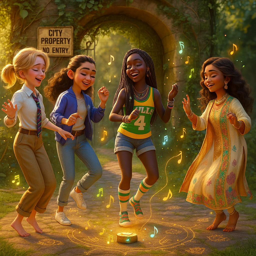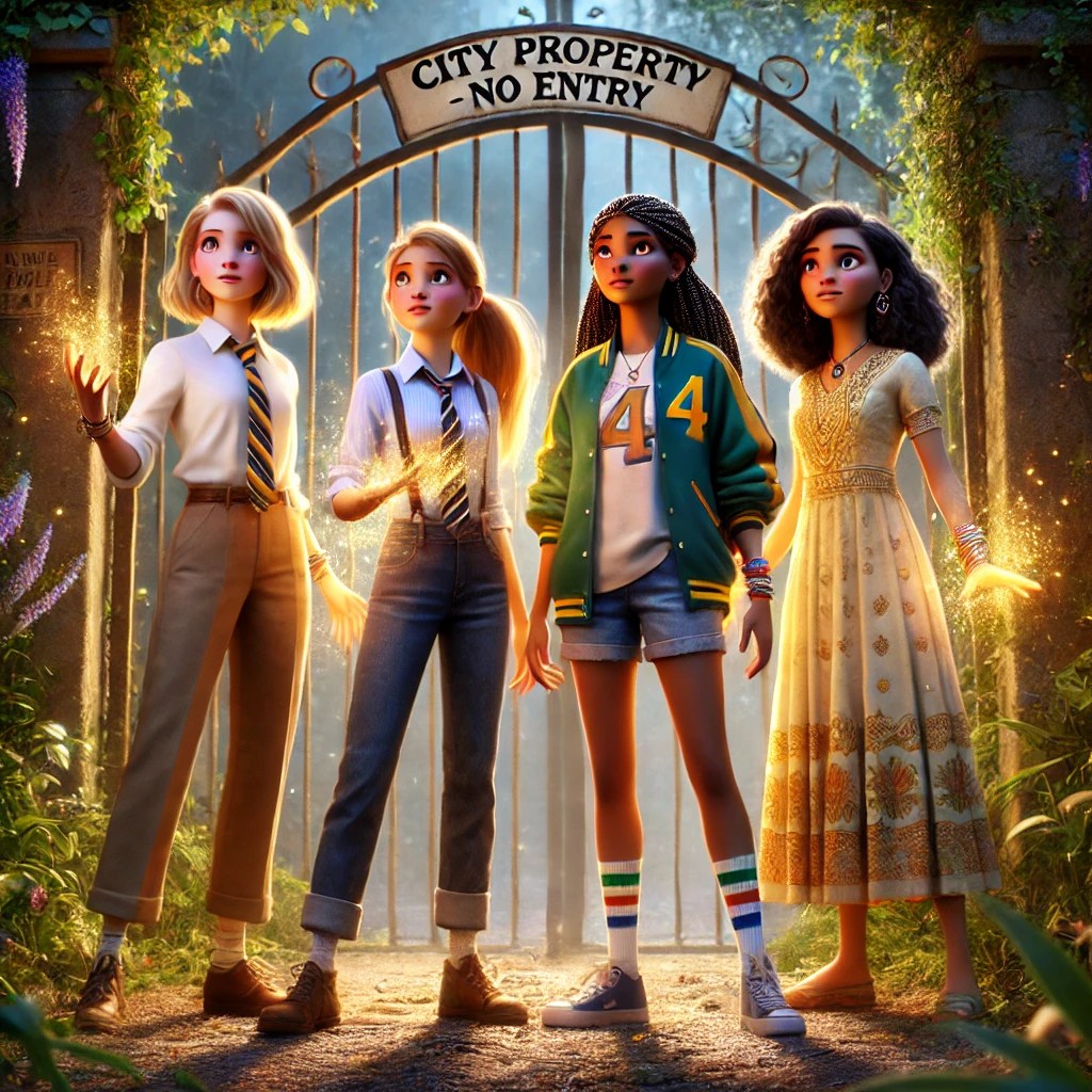 Hidden behind the Richfield Grove, beyond overgrown hedges and old stone walls, lies a forgotten garden, older than the neighborhood itself. Beneath its soil, ancient stones pulse with ancestral energy. The ground trembles, a glowing chasm opens, and the young ladies descend into a hidden realm below.