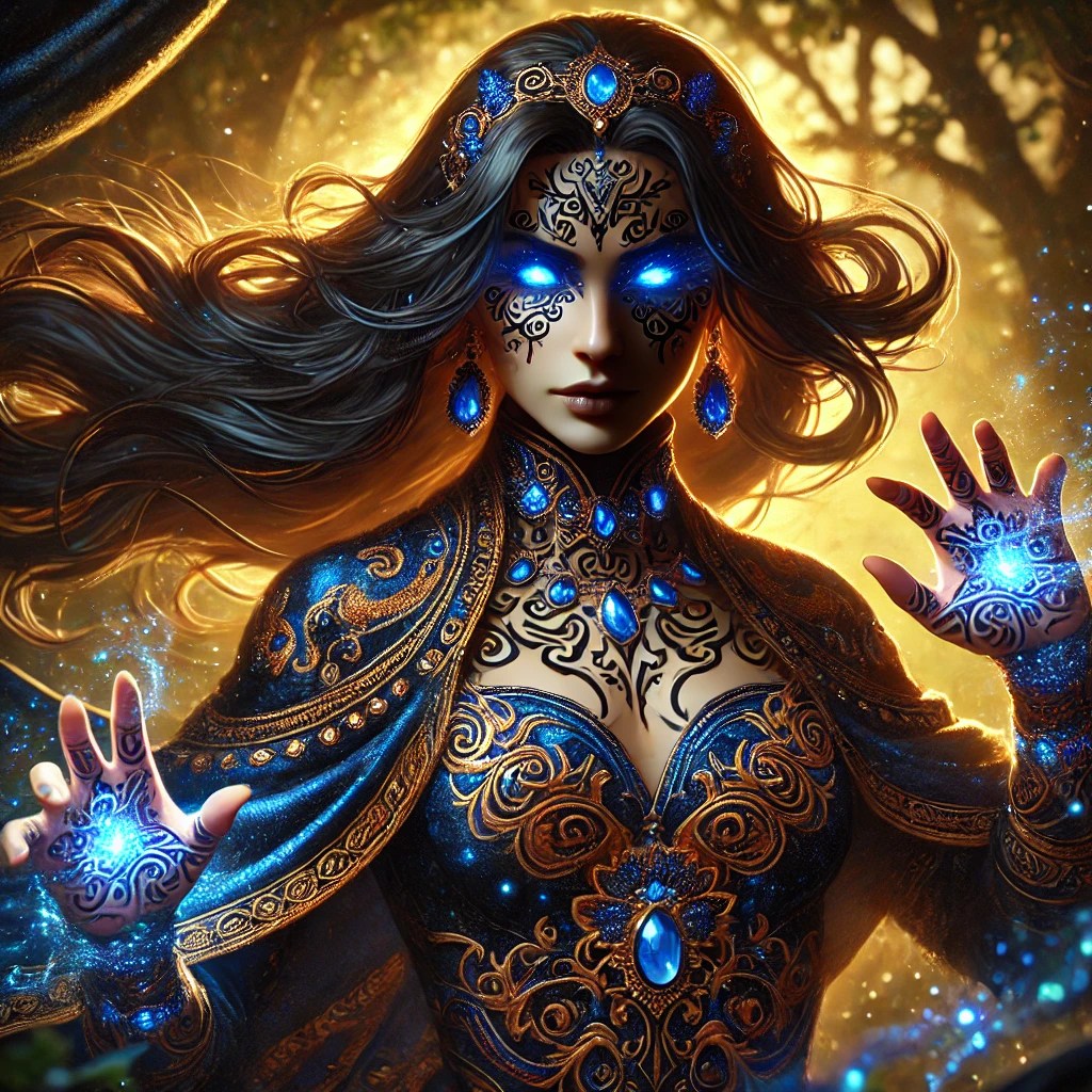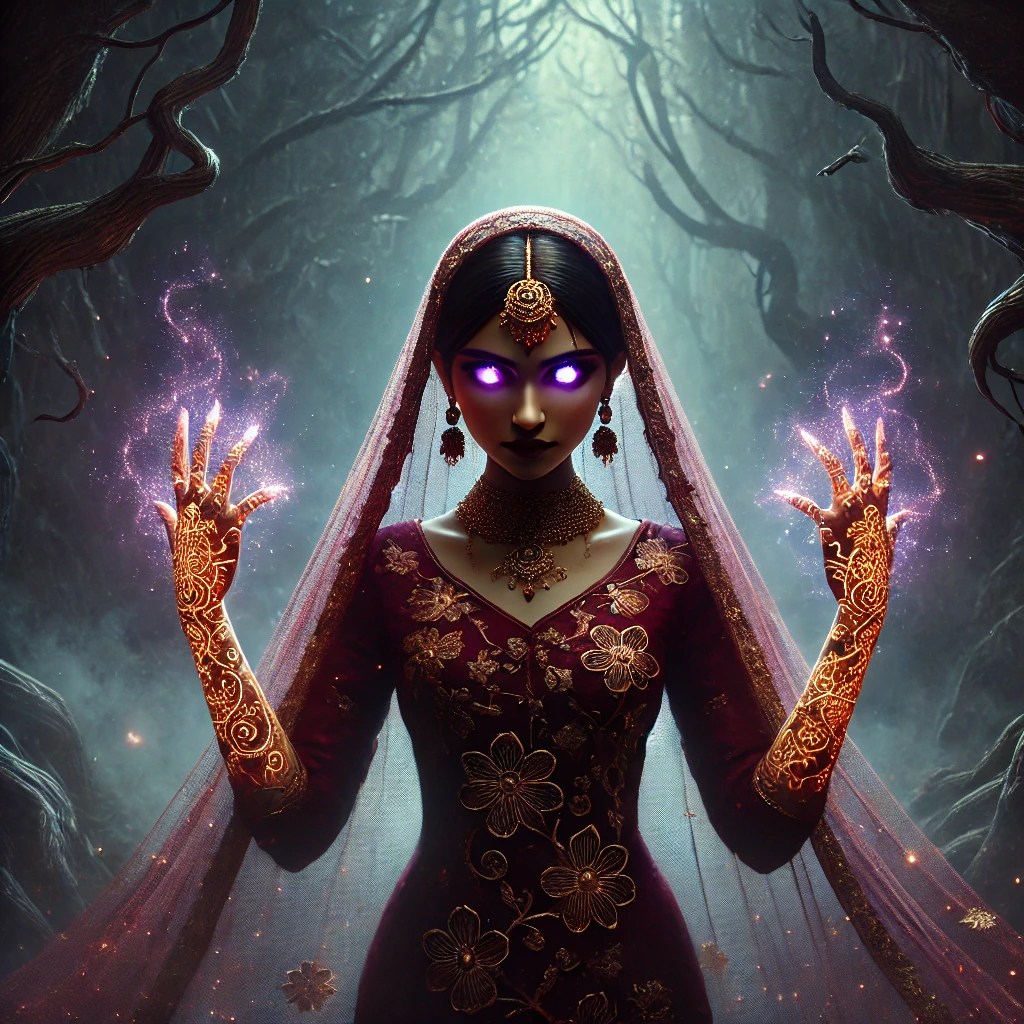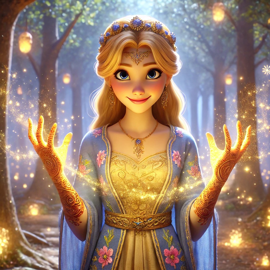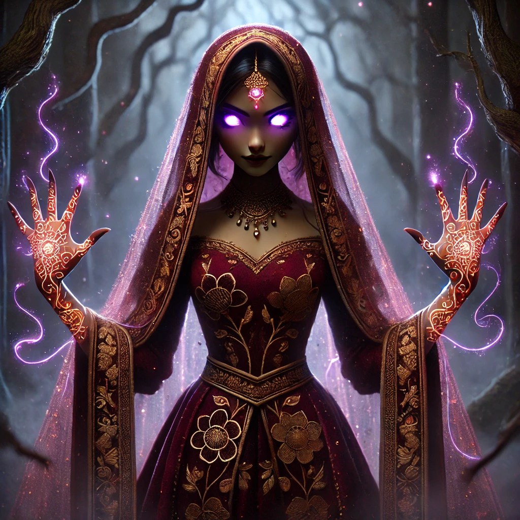 The glowing mehndi designs drawn across their palms are Power Symbols: living motifs that awaken ancestral energy and act as conduits for real magic.