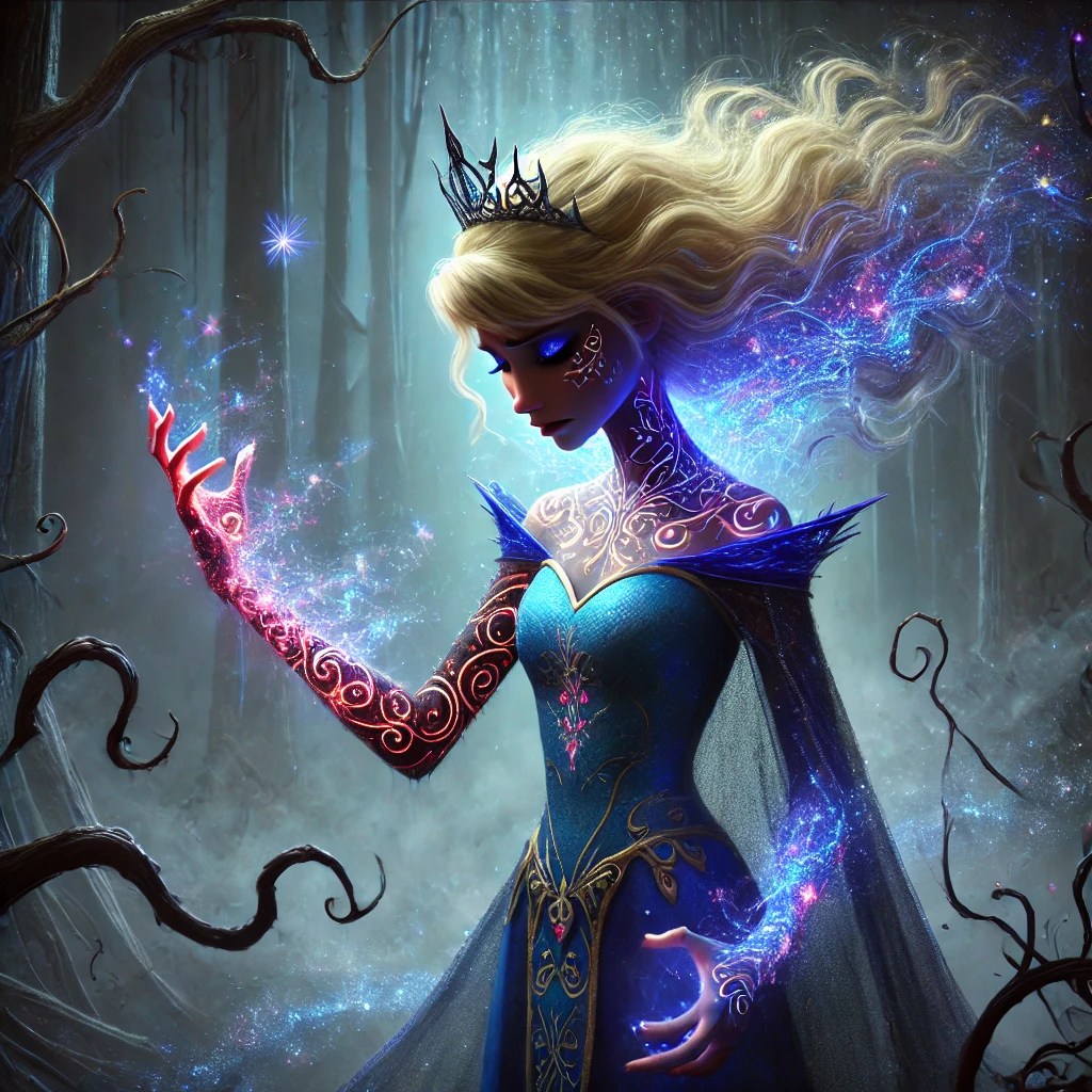The magic doesn’t turn “evil” — it becomes unstable, mirroring the emotional storm within.