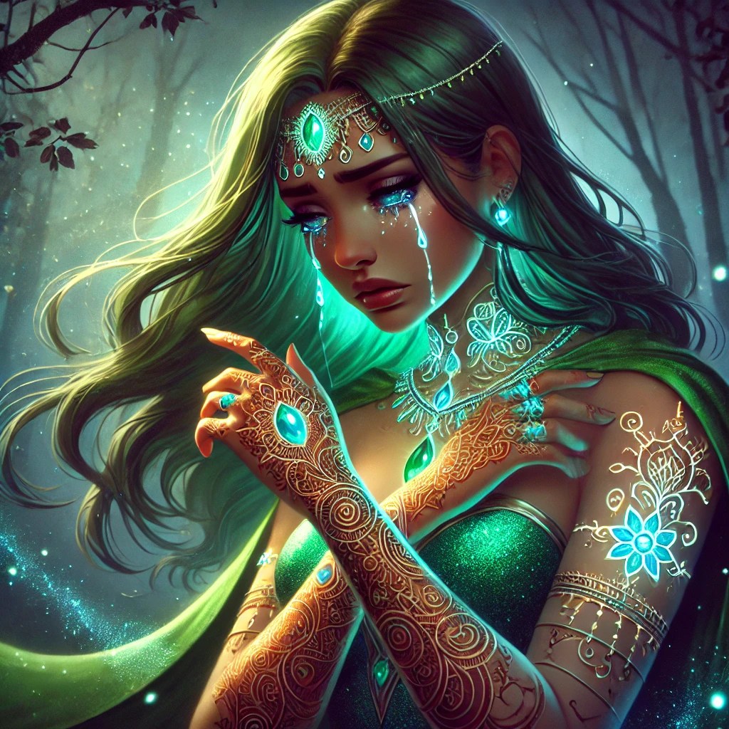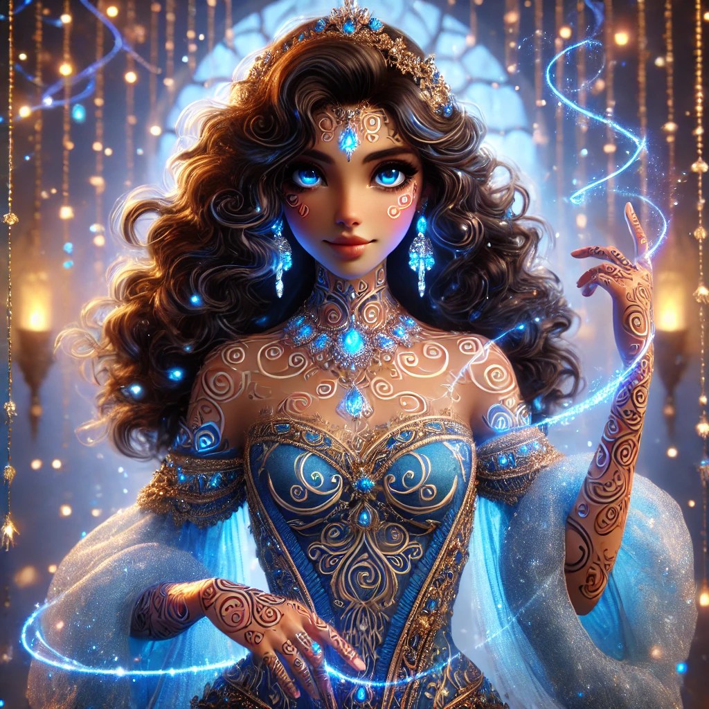 Through ritual gestures — painted with precision, often mid-dance or in moments of need — the henna patterns come alive. Each design reflects a girl’s culture, essence, emotional state, and elemental affinity.