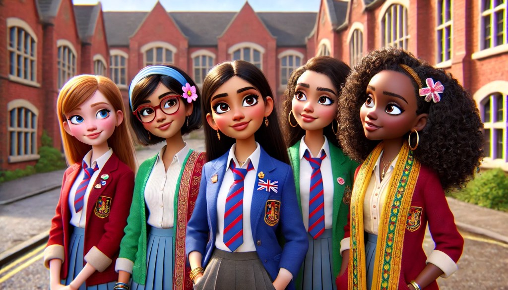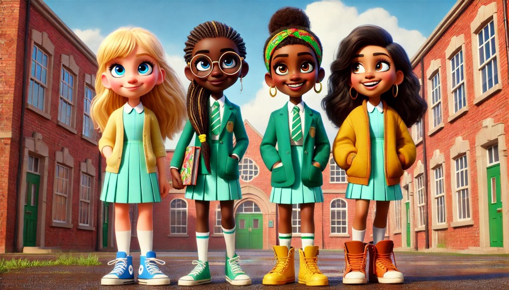 They share a love for dance, music, and fashion, blending tradition with the pulse of pop culture. After school they practice moves, swap style ideas, and sketch symbols in their notebooks — a friendship built on identity, creativity, and growing up in a beautifully blended world.