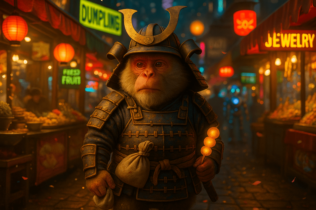 There stood Suji — samurai, monkey, legend.